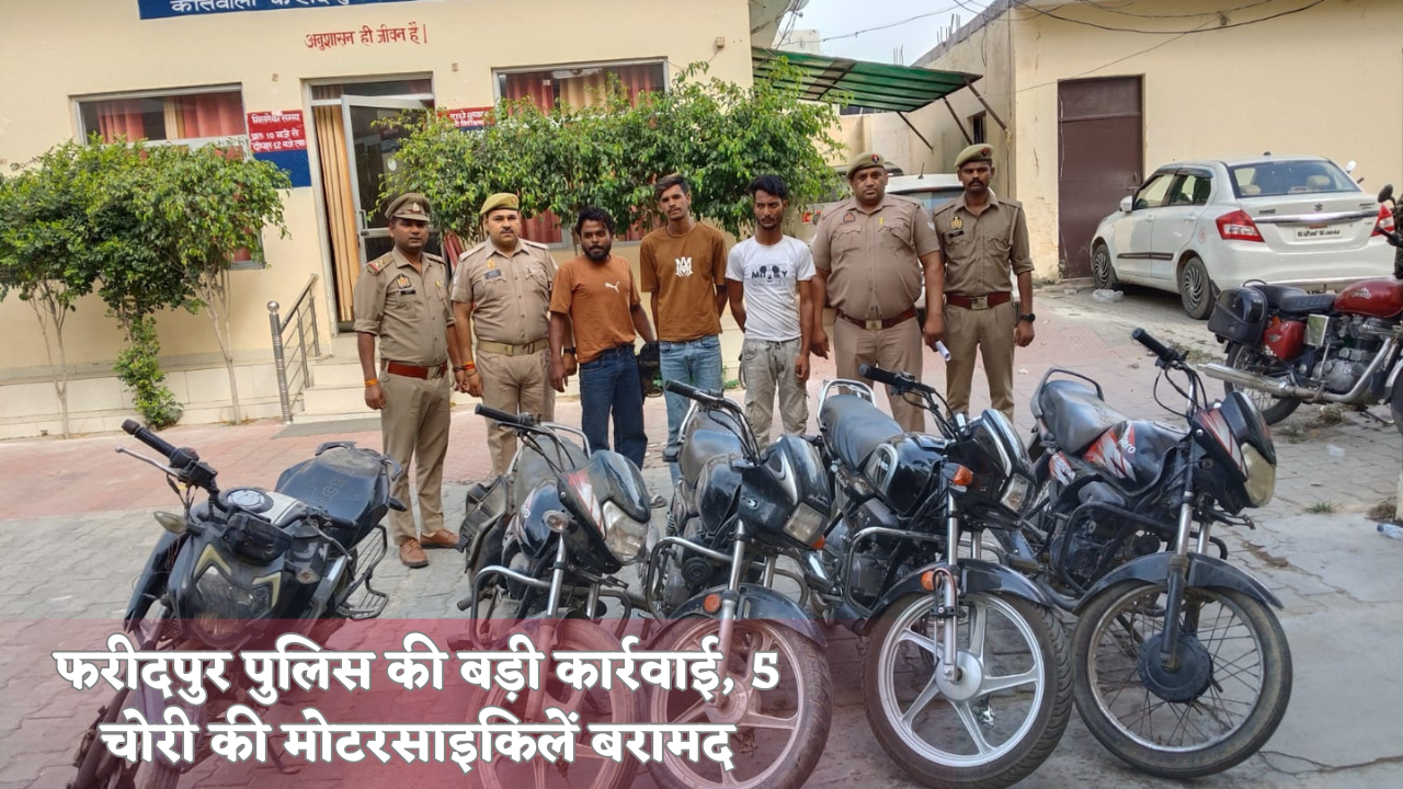 फरीदपुर पुलिस की बड़ी कार्रवाई, 5 चोरी की मोटरसाइकिलें बरामद, 3 शातिर वाहन चोर गिरफ्तार, नेटवर्क का खुलासा शुरू