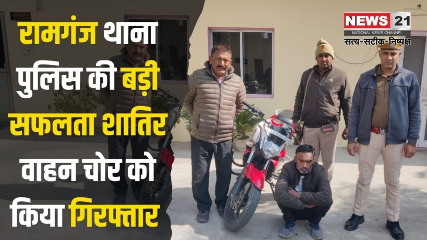 Big success of Ramganj police station: रामगंज थाना पुलिस की बड़ी सफलता: शातिर वाहन चोर सलमान खान गिरफ्तार, चोरी की मोटरसाइकिल और मोबाइल बरामद