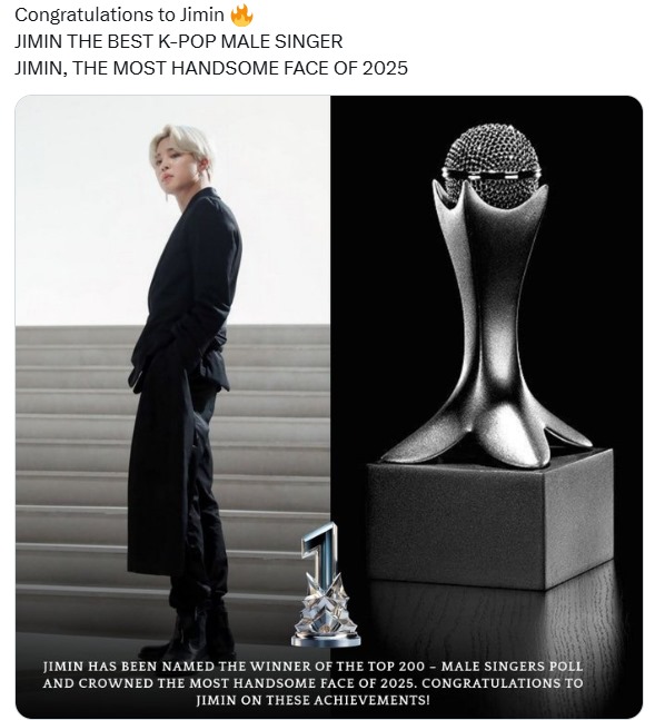 2025 का वार्षिक Most Handsome Faces का लिस्ट जारी हो गया है और इस बार भी BTS के Jimin ने पहला स्थान हासिल कर अपनी खूबसूरती और ग्लोबल फैन फॉलोइंग का जादू बिखेरा।
