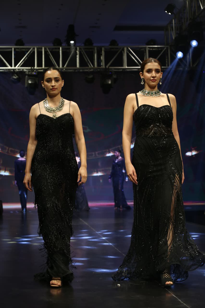 इस अवसर पर प्रमुख डिज़ाइनर्स ने अपनी नई कलेक्शन्स पेश कर फैशन प्रेमियों को मंत्रमुग्ध किया। गुजरात के राजकोट से आए डिज़ाइनर्स लक्ष्मीबा और नीलमबा ने अपने ब्रांड ‘निखार’ के तहत राजपूती पोशाकों और राजस्थान की पारंपरिक हेवी कढ़ाई को रैंप पर जीवंत किया। उनके कलेक्शन ने पारंपरिक राजस्थानी शान को आधुनिक अंदाज में दर्शकों के सामने प्रस्तुत किया। वहीं, श्रीहरी ज्वेल्स एंड आर्ट्स ने कुंदन, मीना, गोल्ड और पोल्की ज्वेलरी के जरिए पारंपरिक ब्राइडल ज्वेलरी का शानदार प्रदर्शन किया।