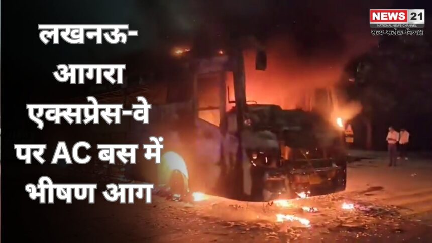 लखनऊ-आगरा एक्सप्रेस-वे पर AC बस में भीषण आग : 70 यात्री बाल-बाल बचे