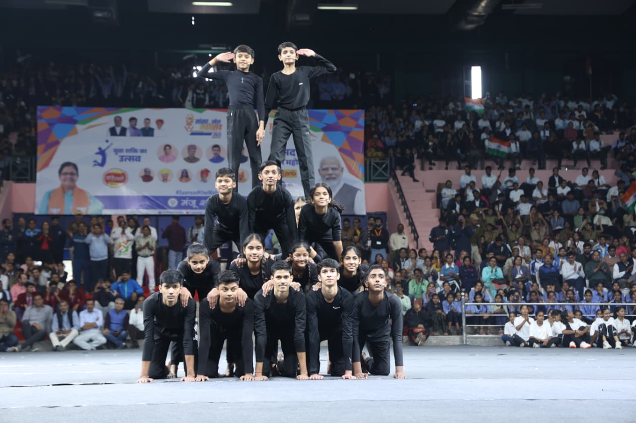 जयपुर में सांसद खेल महोत्सव का रंगारंग आगाज, मलखंभ प्रदर्शन, मार्चपास्ट और 27 खेलों में युवाओं की प्रतिभा को मंच मिला। बच्चों और युवाओं ने विभिन्न प्रकार की मलखंभ मुद्राएँ प्रस्तुत कर अद्भुत शरीर संचालन, लचीलापन और शक्ति का प्रदर्शन किया। गणेश वंदना और अन्य सांस्कृतिक प्रस्तुतियों ने पूरे माहौल को और भी मनमोहक बना दिया।