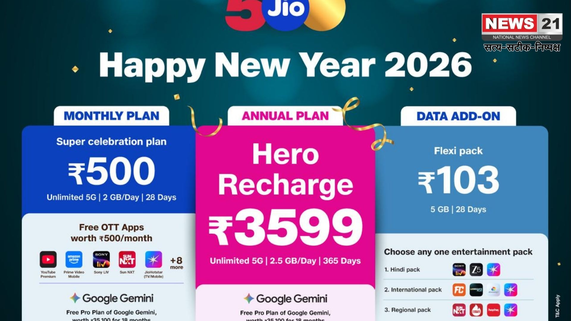 रिलायंस जियो ने हैप्पी न्यू ईयर 2026 ऑफर्स लॉन्च किए, 5G, ओटीटी और एआई अनुभव एक साथ