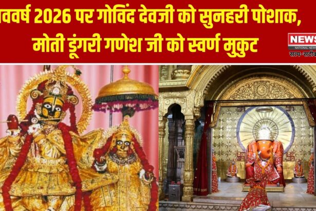 नववर्ष 2026 पर गोविंद देवजी को सुनहरी पोशाक, मोती डूंगरी गणेश को स्वर्ण मुकुट, उमड़ा श्रद्धालुओं सैलाब नववर्ष 2026 के पहले दिन जयपुर के गोविंद देवजी मंदिर में सुनहरी पोशाक…