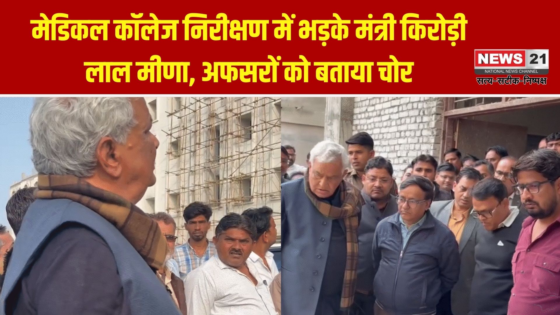राजस्थान सरकार के कैबिनेट मंत्री डॉ. किरोड़ी लाल मीणा सोमवार को सवाई माधोपुर स्थित निर्माणाधीन राजकीय आयुर्विज्ञान महाविद्यालय (मेडिकल कॉलेज) के निरीक्षण के दौरान बुरी तरह भड़क गए। कॉलेज भवन में हो रहे कथित घटिया निर्माण कार्य को देखकर उन्होंने मौके पर मौजूद अधिकारियों को कड़ी फटकार लगाई और तीखे शब्दों में कहा—