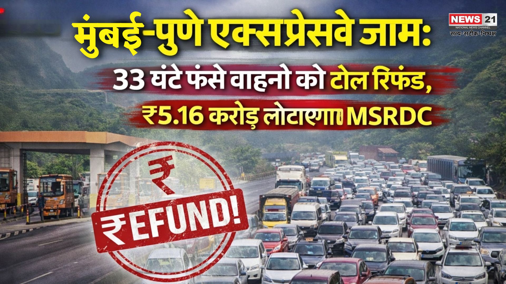 Mumbai-Pune Expressway : 33 घंटे फंसे वाहनों को टोल रिफंड, ₹5.16 करोड़ लौटाएगा MSRDC
