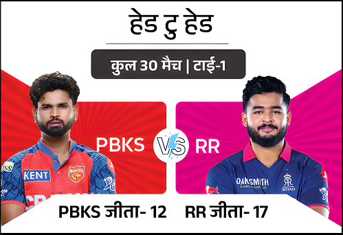 दोनों टीमों के बीच अब तक कुल 30 मुकाबले खेले गए हैं। राजस्थान रॉयल्स की टीम मजबूत नजर आती है, जिसने 17 मैचों में जीत दर्ज की है। वहीं पंजाब किंग्स को 12 मुकाबलों में सफलता मिली है, जबकि एक मैच टाई रहा है। दोनों टीमों के बीच न्यू चंडीगढ़ में 2 मैच खेले गए, दोनों पंजाब ने जीते।