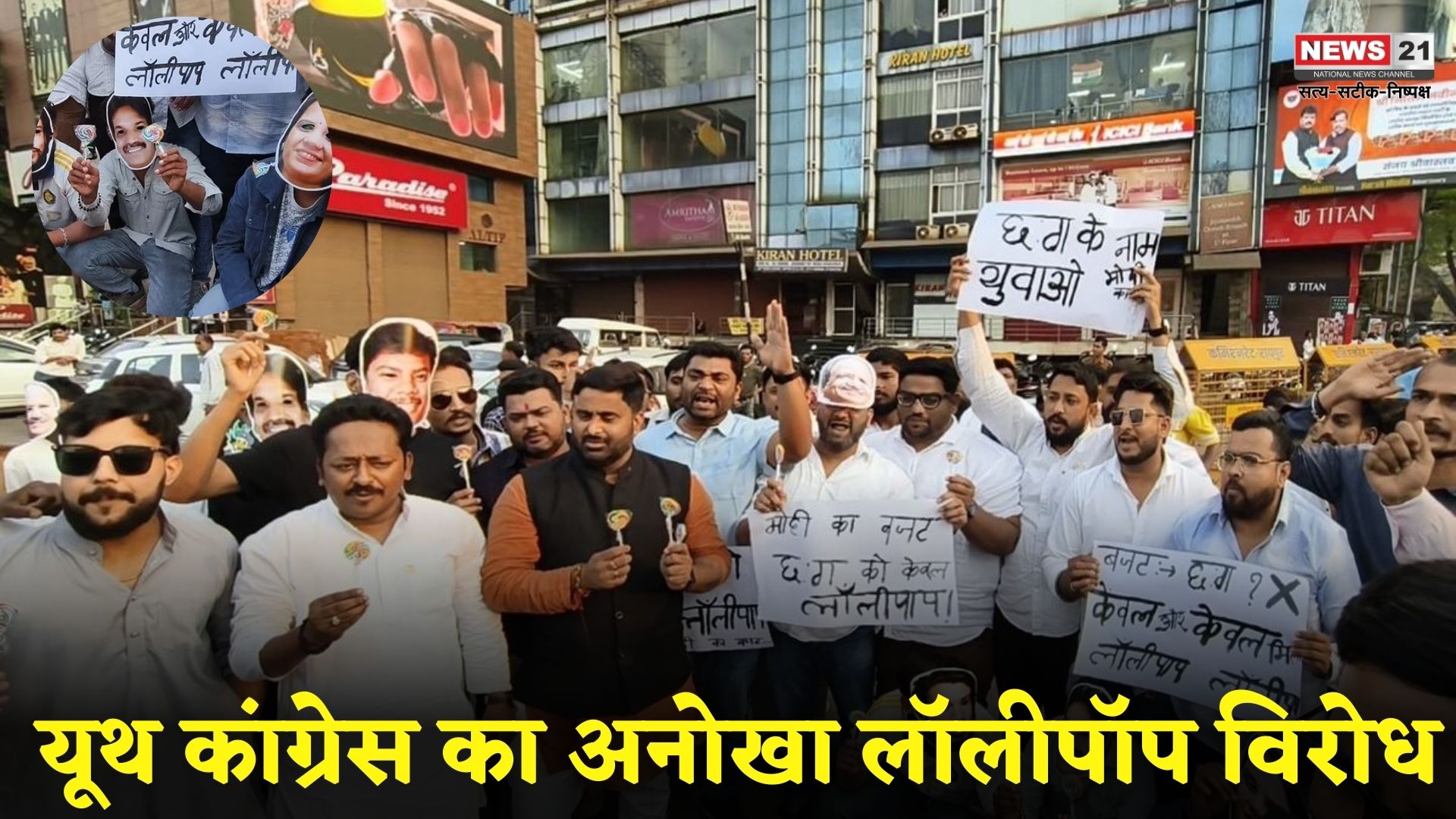 Lollypop Protest : युवा कांग्रेस का बजट विरोध प्रदर्शन, लॉलीपॉप बांटकर, भाजपा नेताओं के मुखौटे पहन BJP सरकार पर साधा निशाना